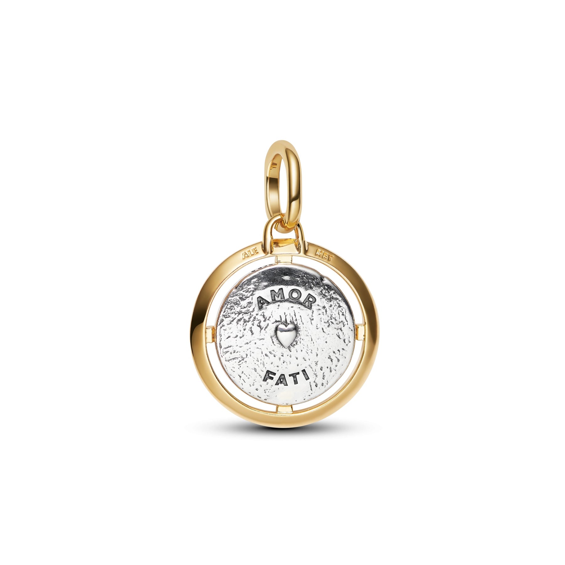Embrace your destiny. Inspired by ancient coins and finished by hand, this mixed metal medallion features the engraved Latin message 'AMOR FATI', meaning 'LOVE OF FATE'. Wear as a reminder: what's meant to be will be.