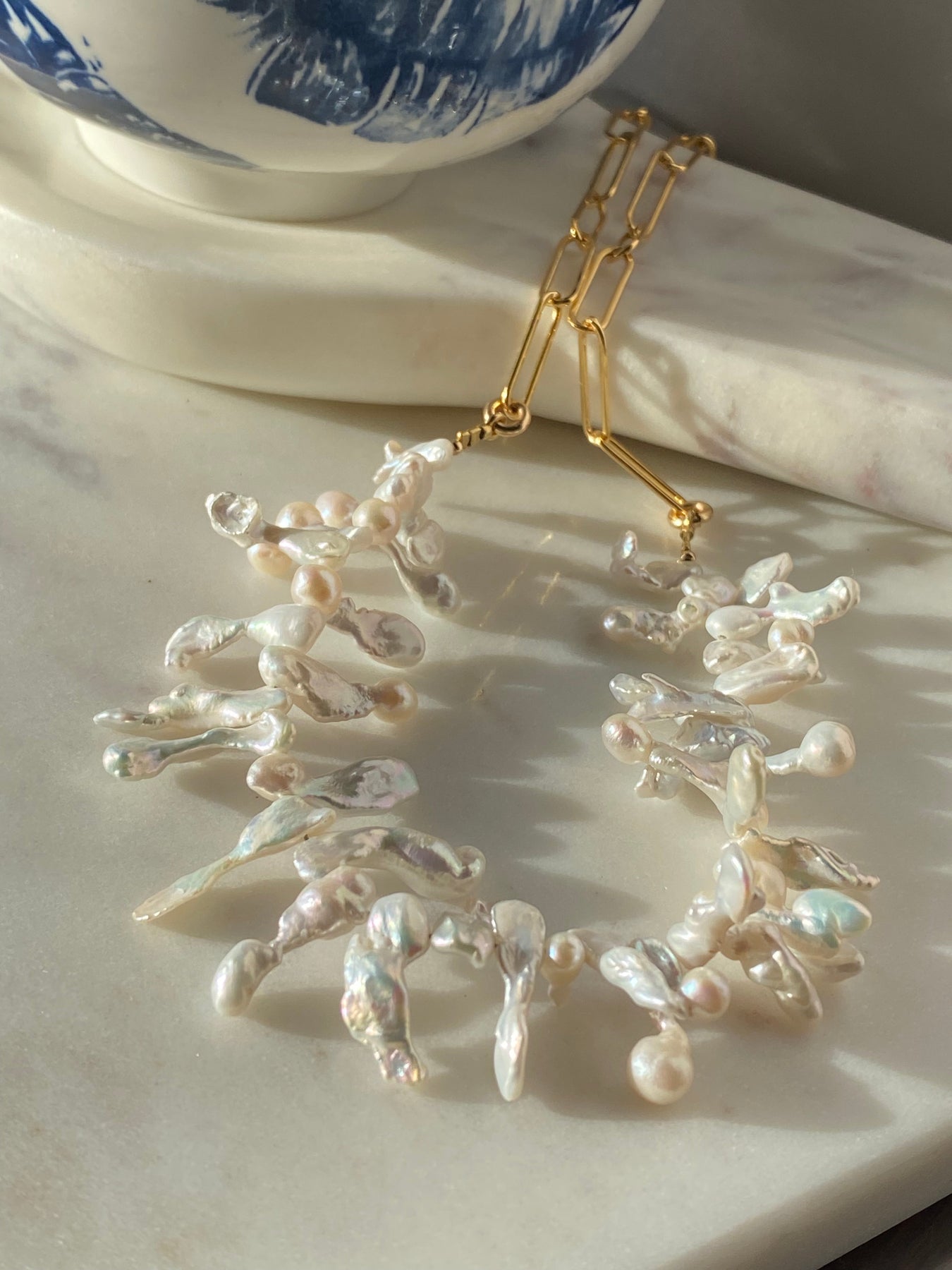 This necklace features freshwater Keishi pearls on a 14kt gold fill chain. Choose a style.