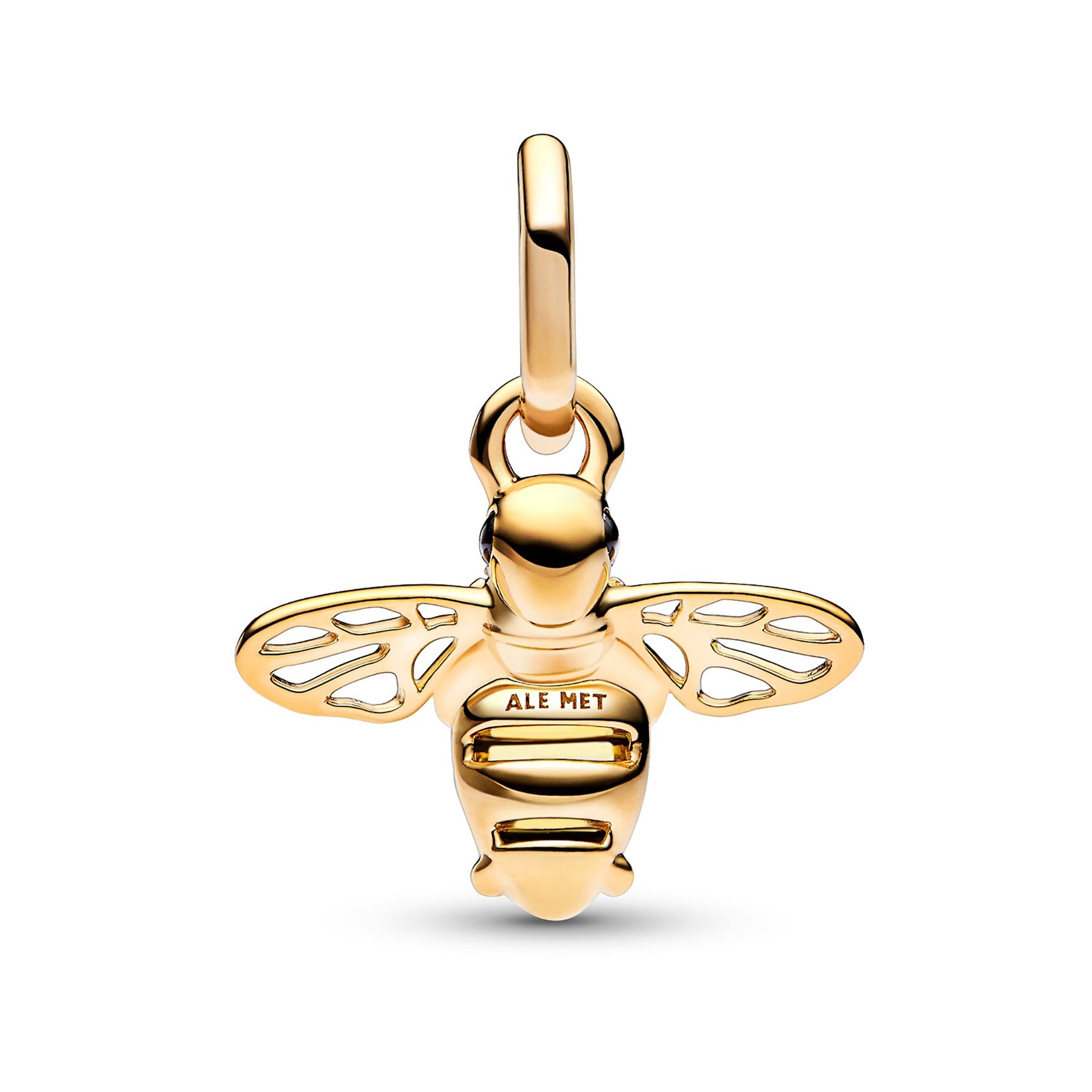 Be the queen you are with the Sparkling Bee Dangle Charm. This 14 gold-plated charm dangles from a honeycomb-shaped bail, its openwork wings creating lifelike patterns. The bee's body is crafted from a yellow cabochon-cut man-made crystal overlaid with stripes of enamel, creating a golden honey color when the light shines through it. Clear cubic zirconia stones add sparkle between the bee's wings. Thought to symbolize wisdom, abundance and rebirth, wear this bee charm to bring a touch of nature's power to your jewelry.