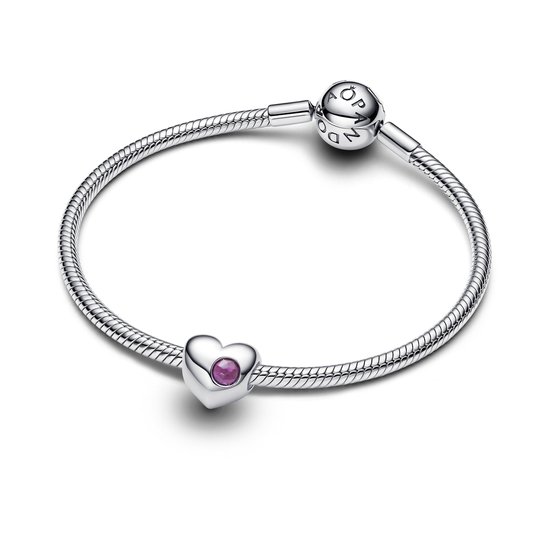 Engrave a message of love. Our sterling silver heart charm with a flush-set purple man-made crystal is the perfect canvas for a personal note or meaningful memento.